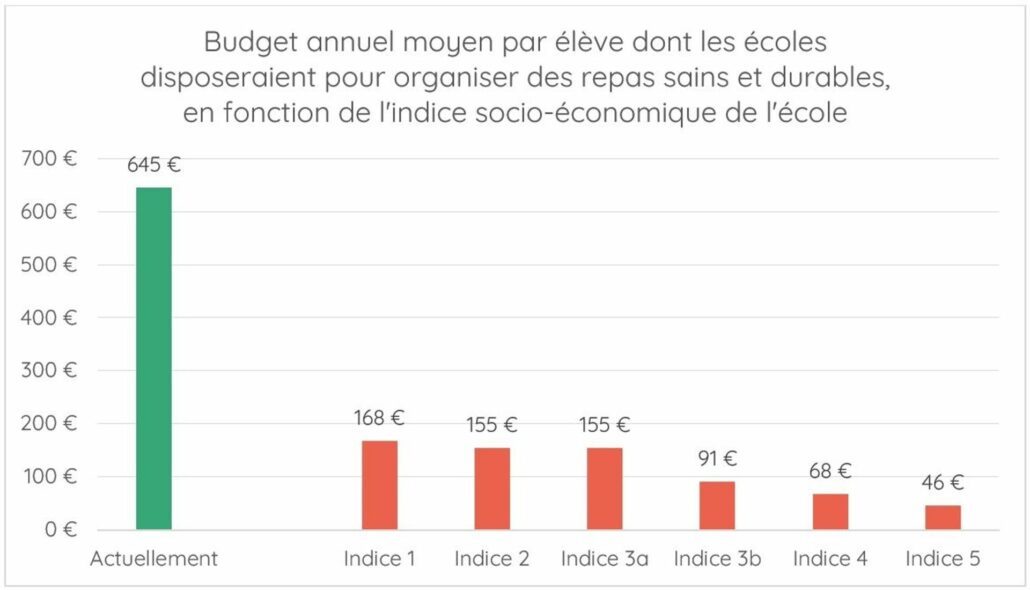 Mais la FWB doit faire des économies. Le gouvernement projette de réduire sérieusement l’enveloppe des établissements scolaires concernés. La Ligue des familles a fait ses calculs. Merlin Gevers détaille : « D’abord, les moyens disponibles pour ces repas sont en baisse. Il ne reste que 8,2 millions d’euros pour les organiser, au lieu des 21,4 aujourd’hui. Ensuite, ces moyens en baisse seront dilués dans deux fois plus d’écoles. Théoriquement, les écoles peuvent décider d’allouer plus que 8,2 millions en plus à ces repas. Mais alors elles devront supprimer des activités de soutien pédagogique, augmenter le prix des activités scolaires à charge des parents, rogner dans le matériel scolaire mis à disposition ou supprimer des heures à des assistants sociaux ou des logopèdes. Et si elle refusent logiquement ces mesures, le budget disponible par enfant par an pour organiser desrepas va être divisé par… 6, en moyenne, si le gouvernement confirme ses intentions. Annuellement, dans les écoles qui organisaient ces repas, le nombre de repas à 3,70 € distribuables gratuitement par élève serait divisé par 9 (si on tient compte qu’il y a une part fixe nécessaire aux frais de fonctionnement). Et ce sera pire dans certaines écoles dépendant de leur indice socio économique (ndlr : l’indice socio-économique est le reflet du niveau de vie des ménages et familles fréquentant l’établissement scolaire – l’indice 1 étant le plus précaire). Par exemple dans les écoles d’ISE 5, le budget par élève serait divisé par 14. Ces repas deviendraient inorganisables dans les faits, avec une telle division des moyens.”